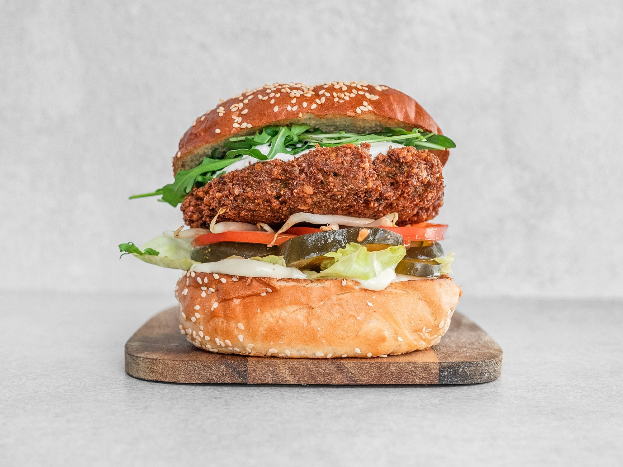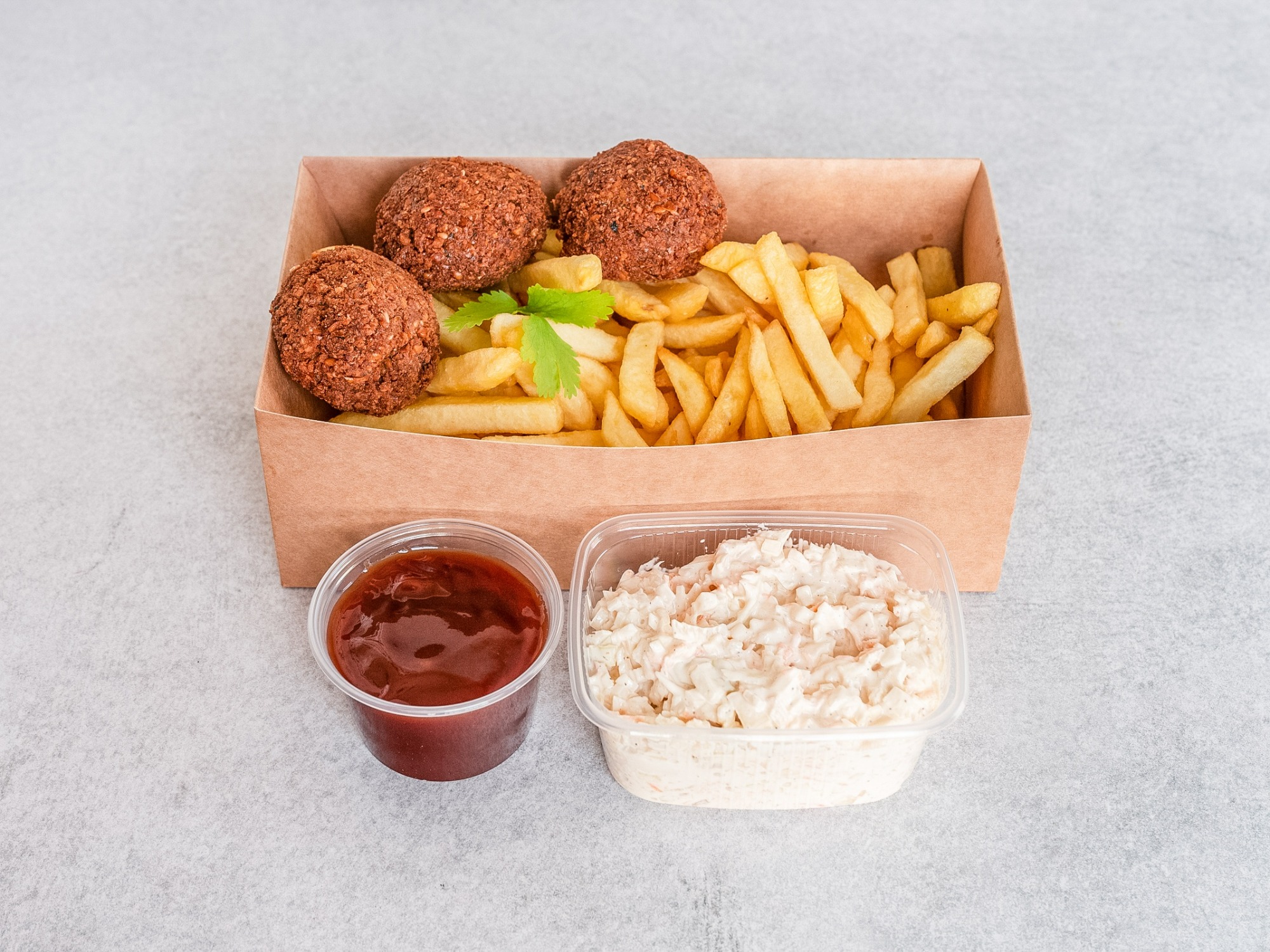 Do wyboru dwa rozmiary, 120 lub 220 gramów falafela. Wersja 200g podawana jest z większą ilością dodatków i w powiększonej bułce. Podana waga przed usmażeniem